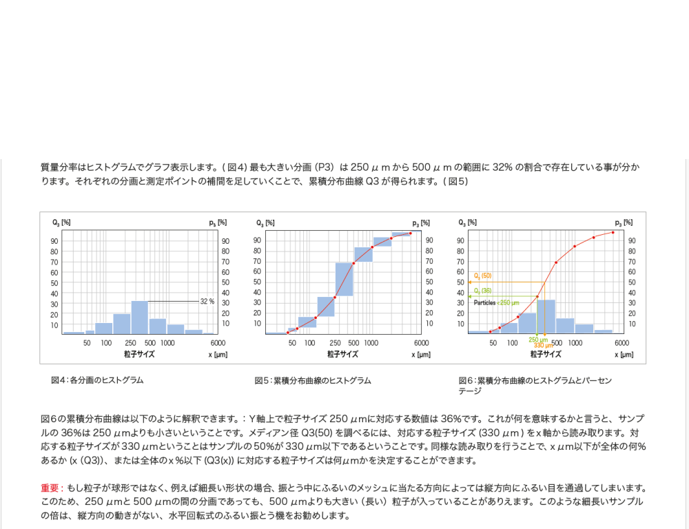 ・縦、横、ねじれの三次元効果の分級で、試料がメッシュの全面を移行しながら均等に振とう。